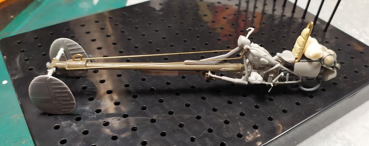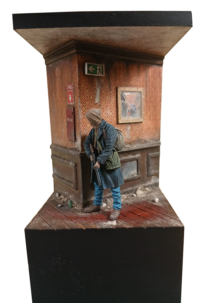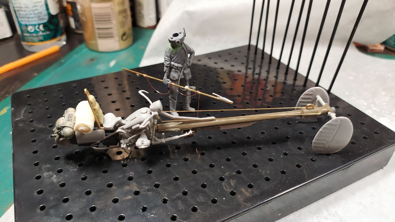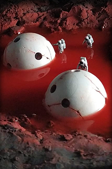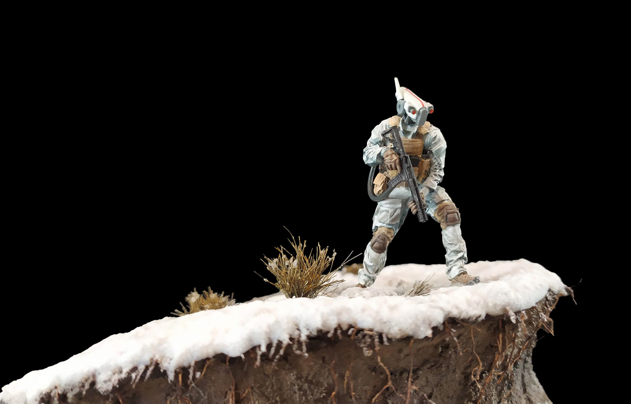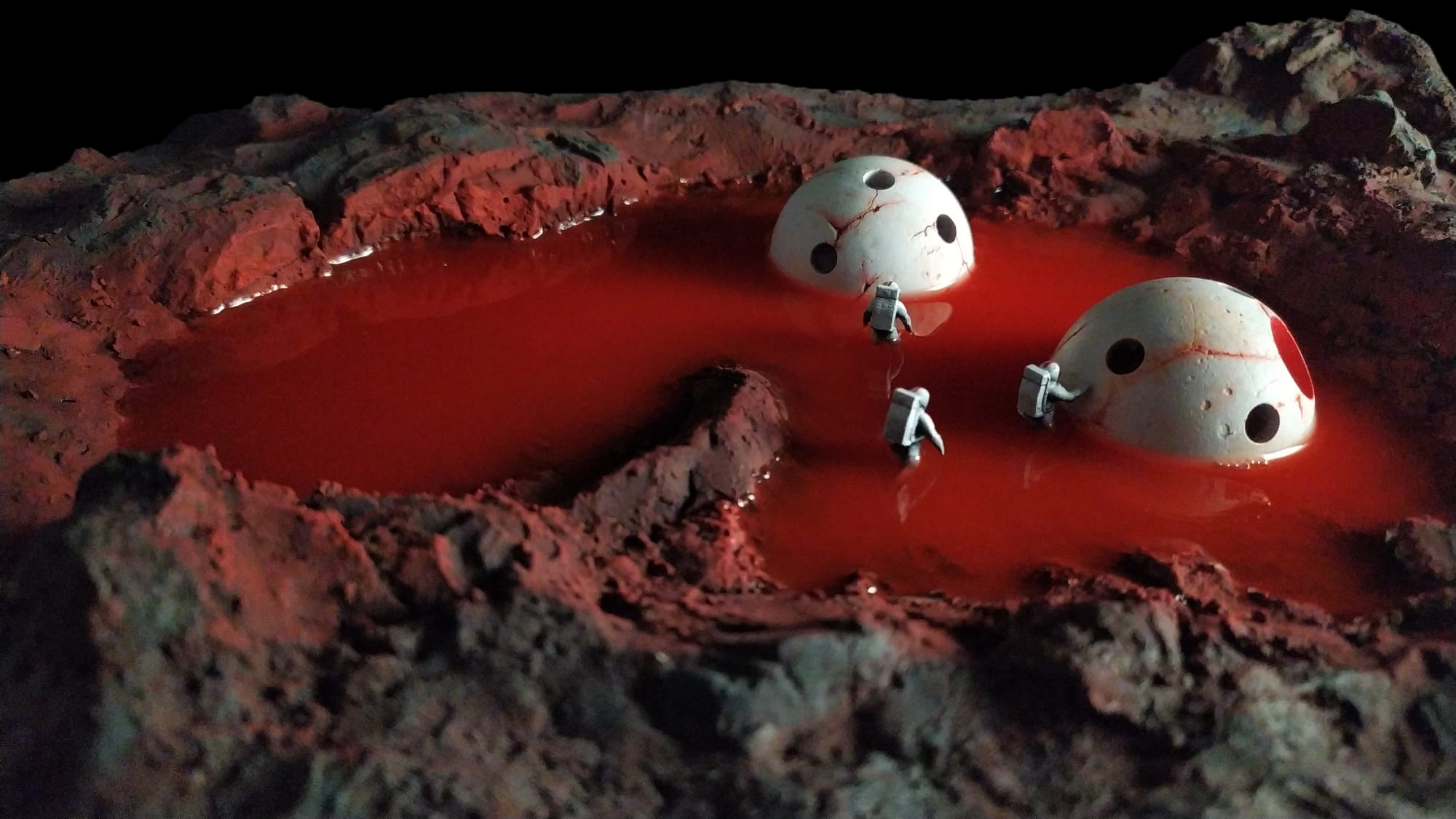 | 1/35 scale scifi scene. Made with spare parts, plastic and a table tennis ball. |
