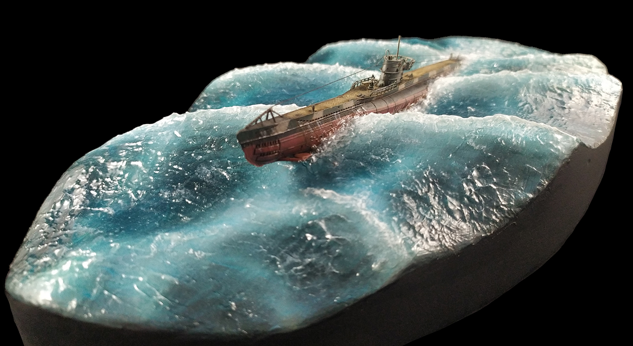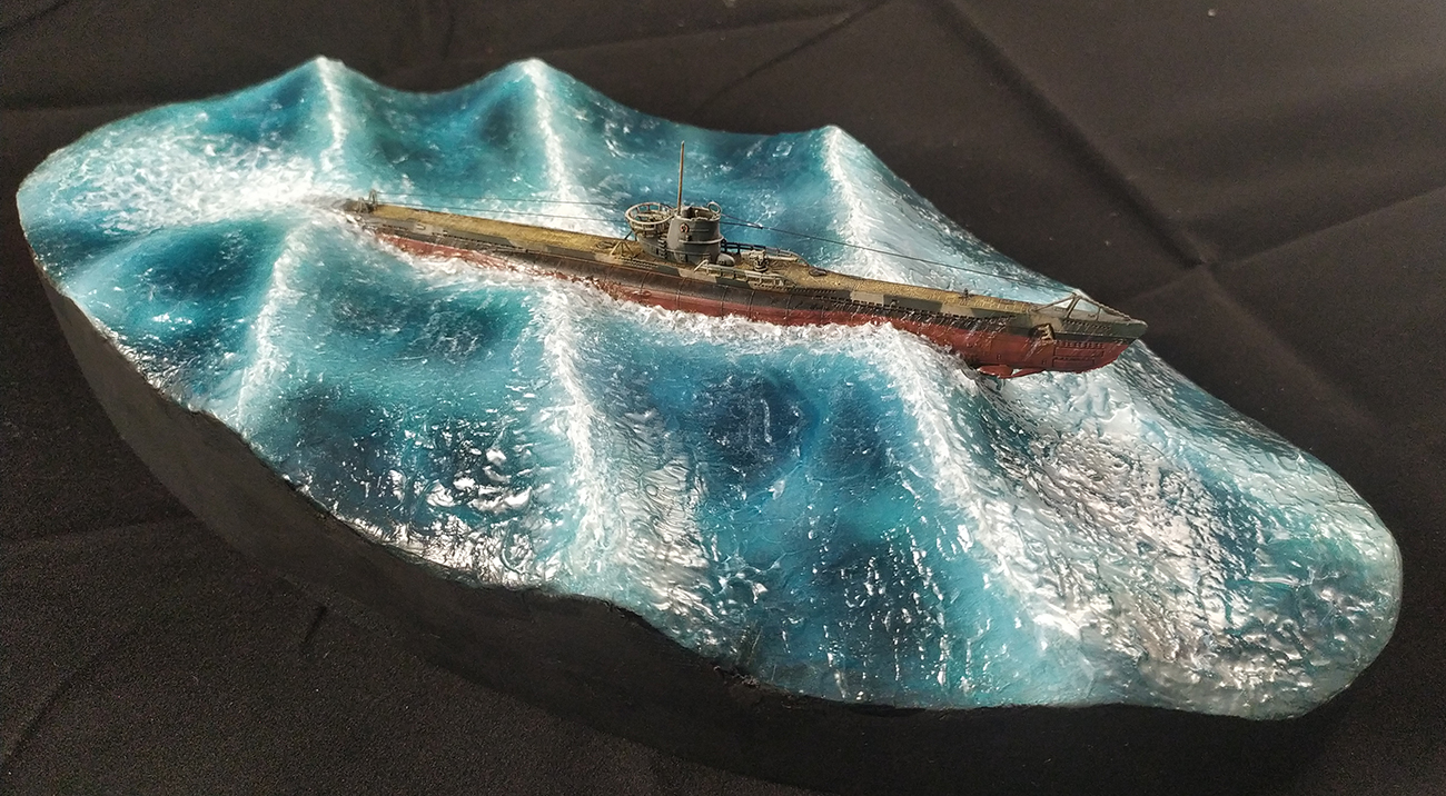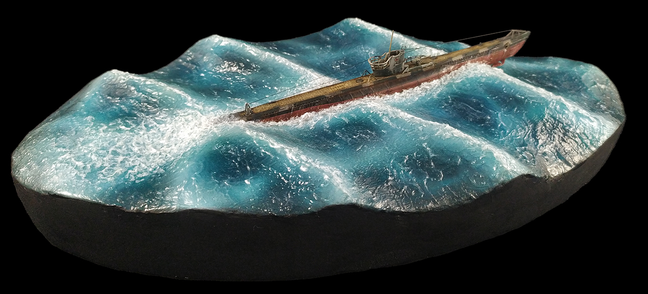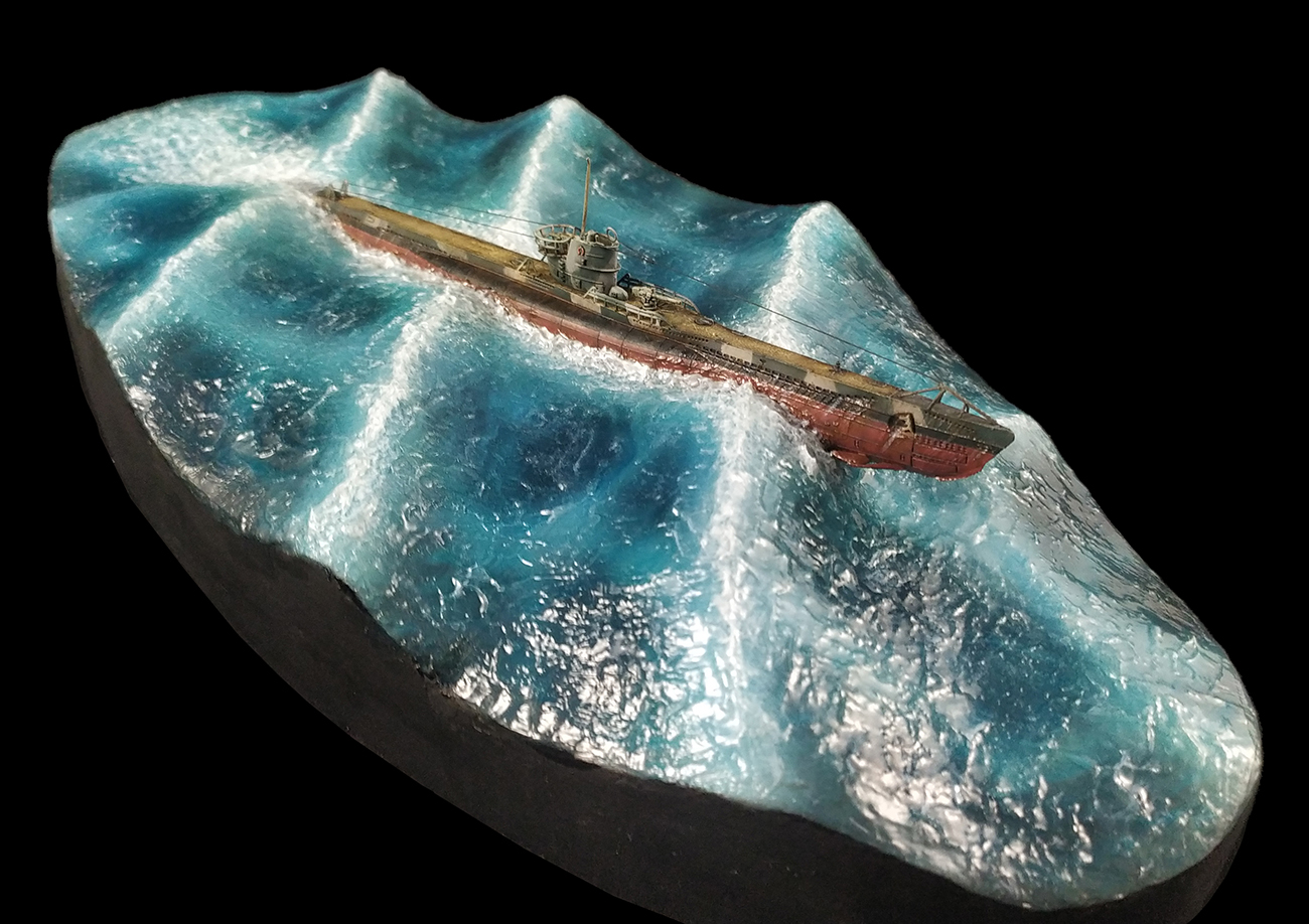 | I-19 Japanese submarine. AFV Club model kit. 1/350 scale. All the rest, figures, truck and dock were modeled using Zbrush and 3D printed. The crane was made using tin and styrene sheet. |