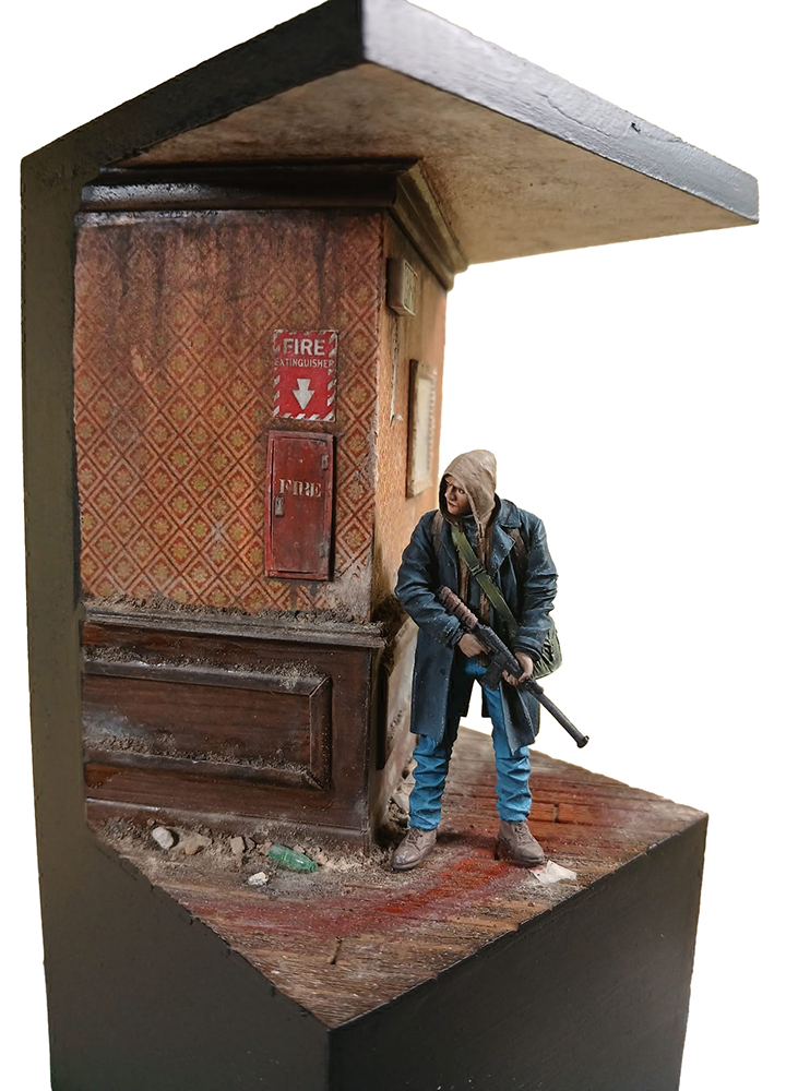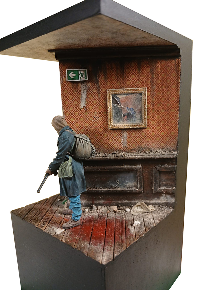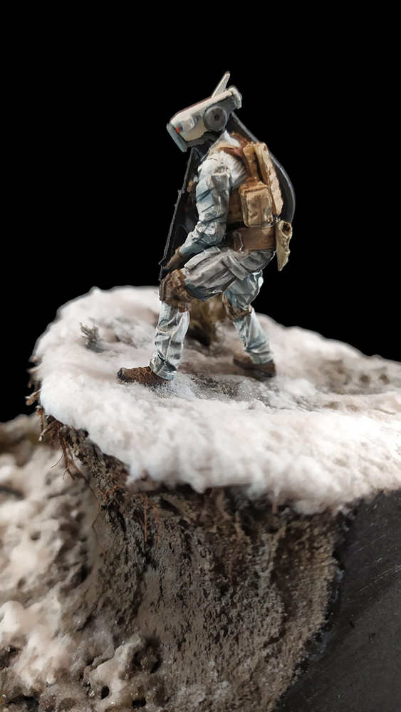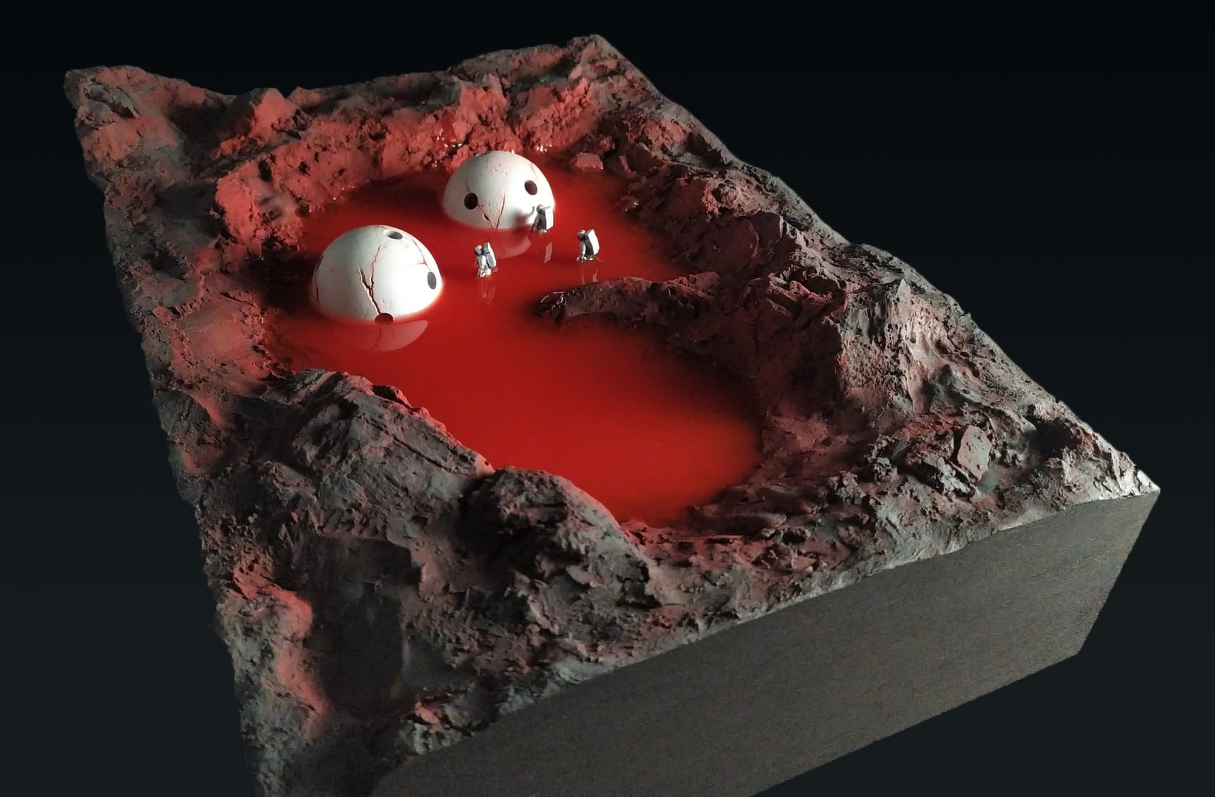 | 1/35 scale scifi scene. Made with spare parts, plastic and a table tennis ball. |
