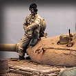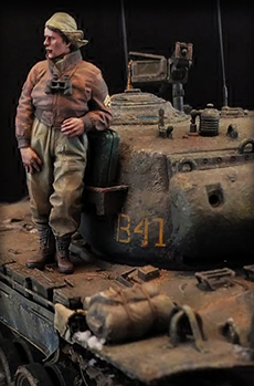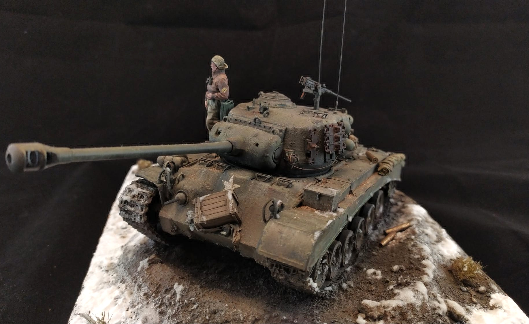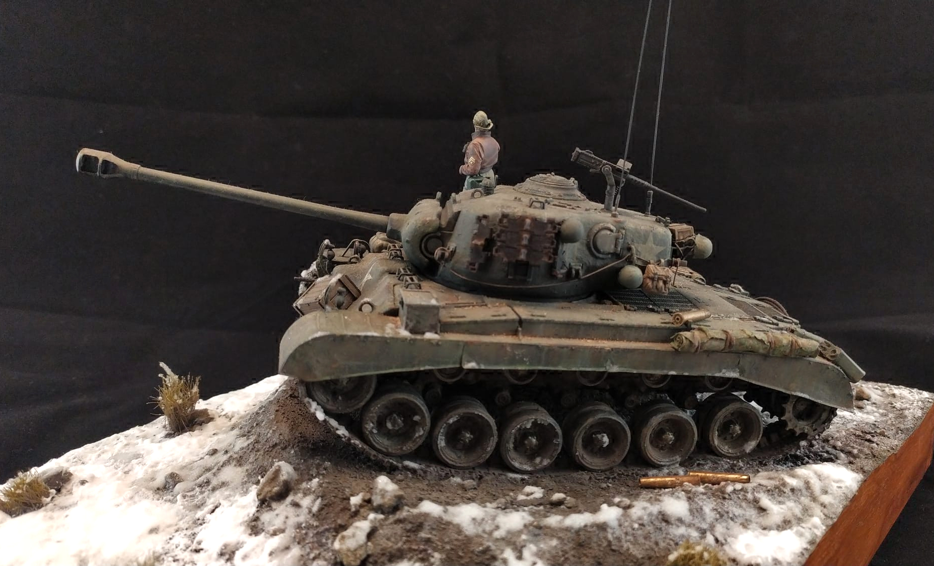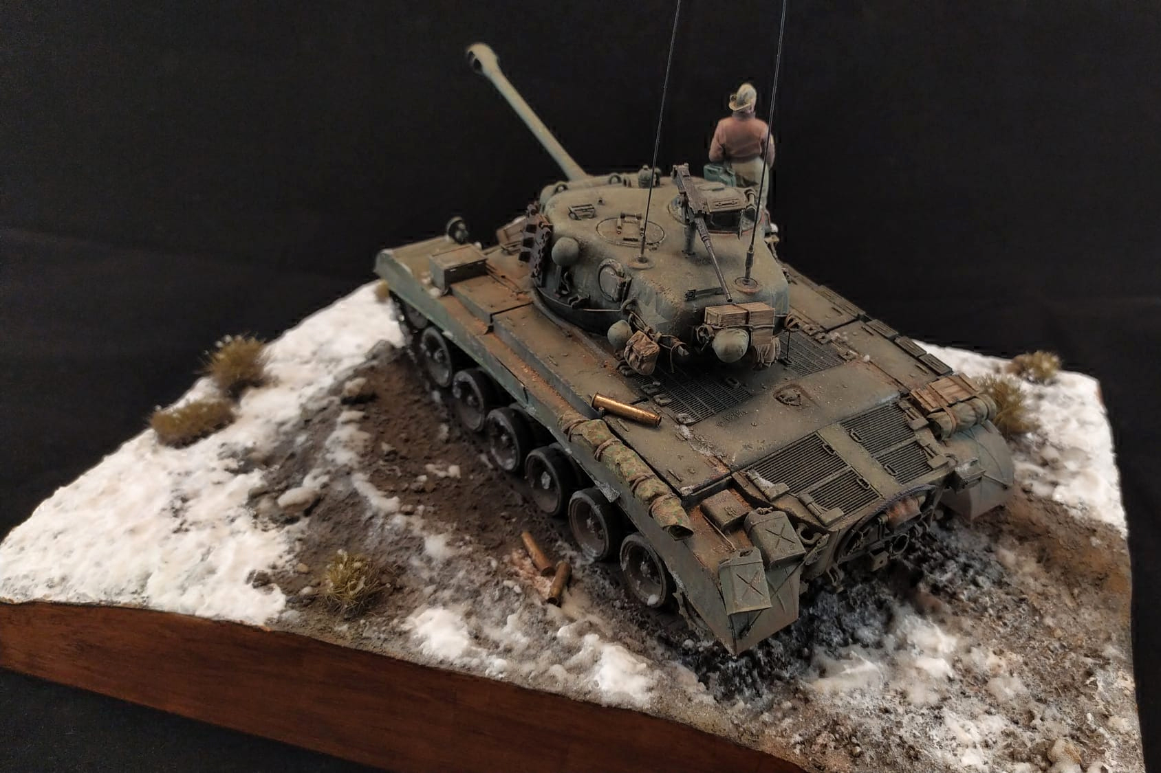 | Korean War winter scene. 1/35 scale Tamiya model kit with some custom improvements. Metal chains and an Alpine figure. |