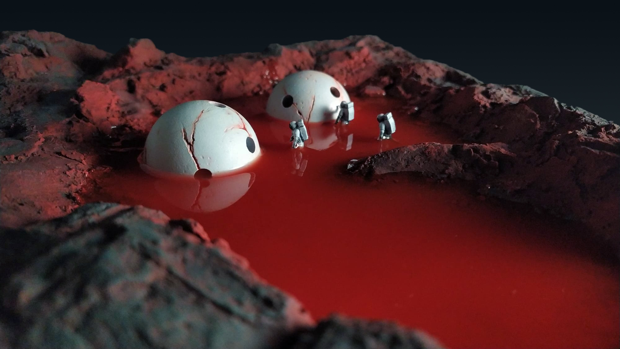 Spheres and figures were modeled with Zbrush and 3D printed. |