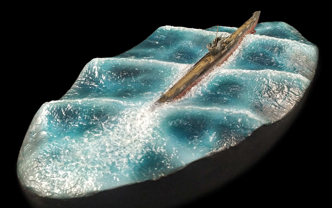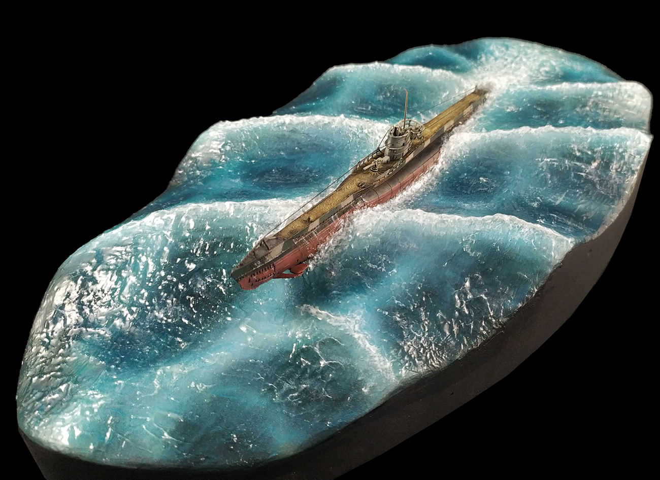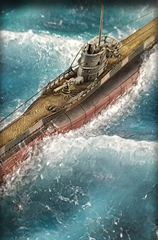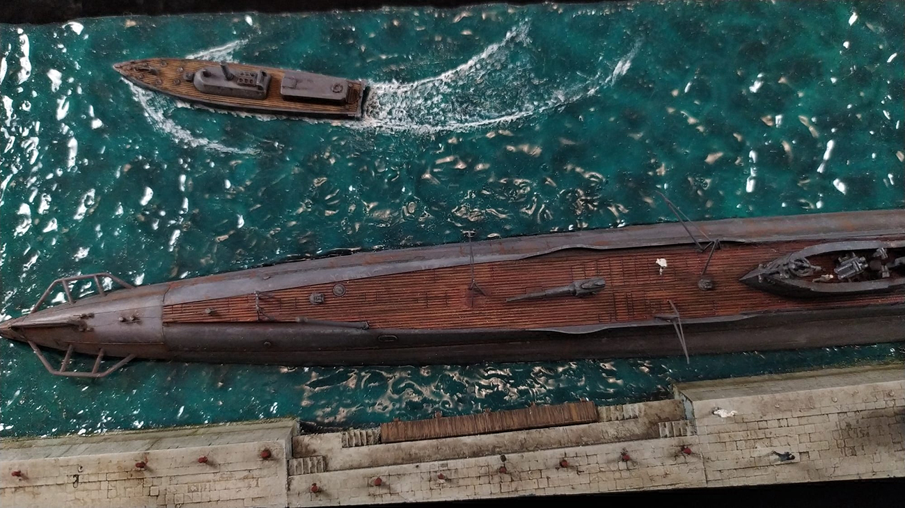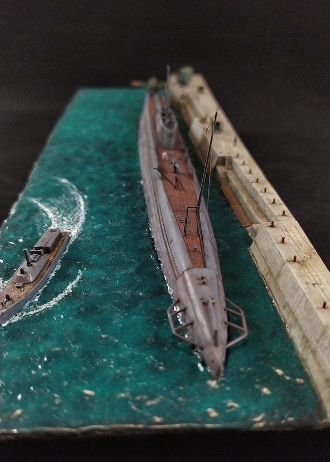 | I-19 Japanese submarine. AFV Club model kit. 1/350 scale. All the rest, figures, truck and dock were modeled using Zbrush and 3D printed. The crane was made using tin and styrene sheet. |